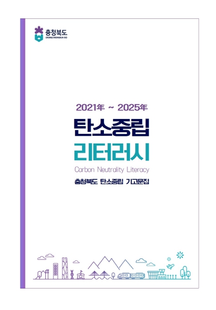 이번에 발간하는 ‘충청북도 탄소중립 리터러시’는 ‘월간 탄소중립’의 35편 기고와 함께 그간 도에서 추진한 탄소중립 관련 포럼이나 간담회 발표 자료를 포함해 총 40편의 글을 실었다.