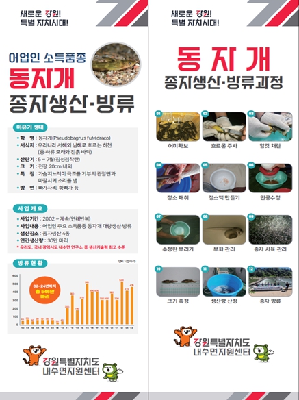 ▲ 동자개 종자방류 현황 및 생산과정 |
