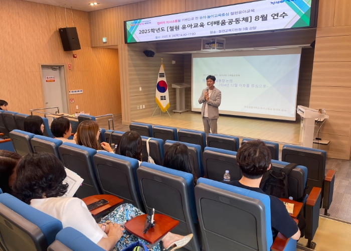 연수에는 철원 관내 공립유치원 교사 및 원감이 참여했으며, 경상국립대학교 김대욱 교수가 강사로 나서 ‘영유아정책 교육·보육 통합의 이해’를 주제로 특강을 진행했다.