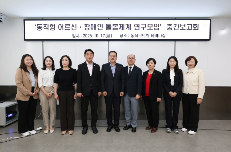 장순욱 대표의원은 “초고령사회 진입과 돌봄 수요의 다양화 속에서, 어르신과 장애인이 지역사회에서 편안하게 생활할 수 있는 돌봄체계 마련이 절실하다”며 “이번 연구가 동작구의 통합돌봄 모델을 구체화하는 계기가 되길 바란다”고 말했다.