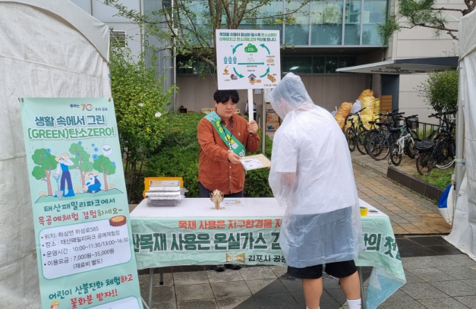 [뉴스노크=김인호 기자] 김포시는 지난 19일 장기동 한강중앙공원에서 국산 목재 이용, 탄소중립 실현, 목재 이용 문화 정착을 촉진하기 위하여 목재이용 권장 캠페인을 개최했다.