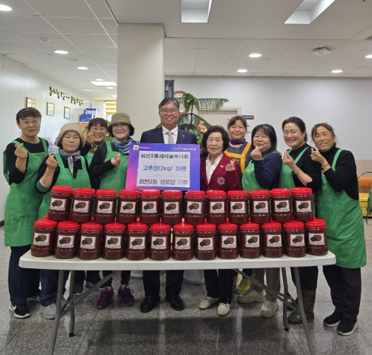 이날 기부된 고추장은 회천2동 새마을부녀회 회원 10여 명이 아침부터 모여 만든 고추장으로, 관내 경로당 39개소에 각 1통씩 전달됐다.