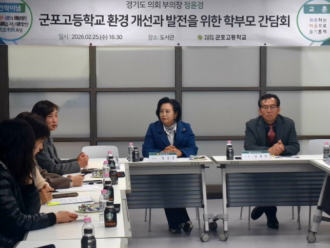 이어 정윤경 부의장은 “교육환경은 단순한 시설 문제가 아니라 살고 싶은 도시를 만드는 기반”이라며 “군포고가 공교육의 성과를 이어갈 수 있도록 현장의 의견을 면밀히 검토하고, 실질적인 개선 방안을 다각도로 모색하겠다”라고 밝혔다.