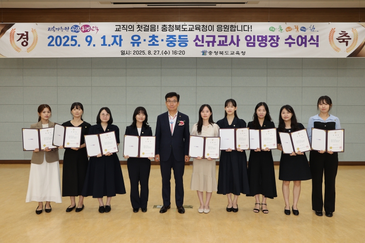 [뉴스노크=김인호 기자] 충청북도교육청은 27일, 충북교육청 화합관에서 2025년 9월 1일자로 승‧전직하는 교원 및 교육전문직원에게 임명장을 수여하는 뜻깊은 자리를 마련했다.