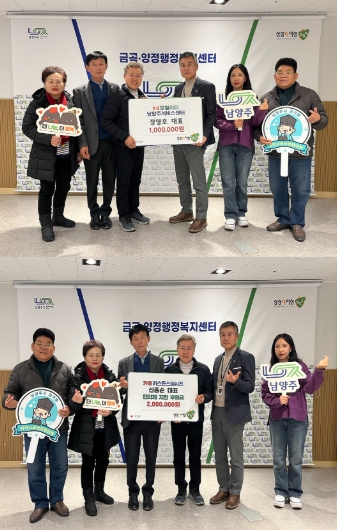 [뉴스노크=김인호 기자] 남양주시는 10일 KG모빌리티 남양주서비스센터와 카페 키스톤스피시즈가 금곡동지역사회보장협의회에 각각 100만 원, 200만 원을 후원했다고 밝혔다.