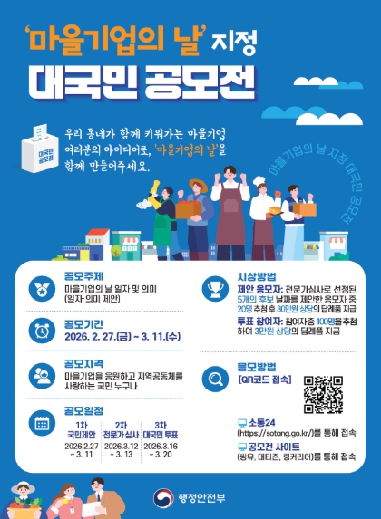 행정안전부, 지역을 살리는 마을기업, 기념일도 국민과 함께...'마을기업의 날' 공모