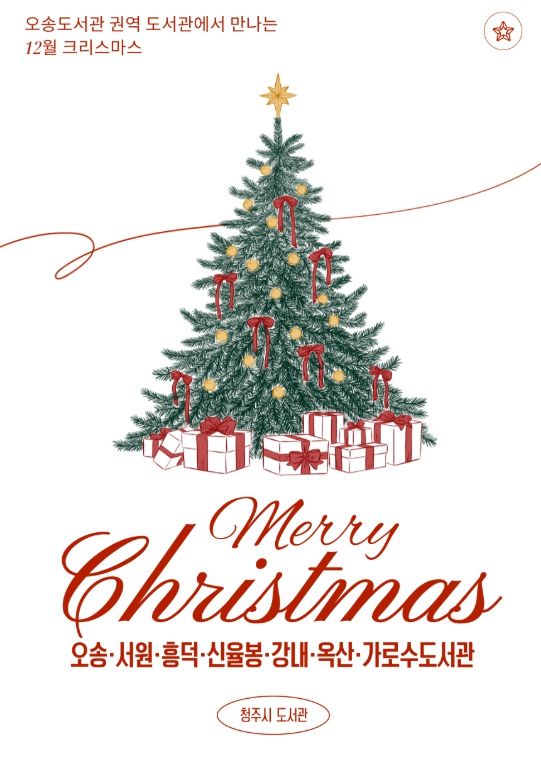 [뉴스노크=김인호 기자] 청주시 오송도서관 권역 7개관(오송·서원·흥덕·신율봉·강내·옥산·가로수도서관)은 크리스마스 시즌을 맞아 12월 한 달 동안 다채로운 문화행사를 진행한다.