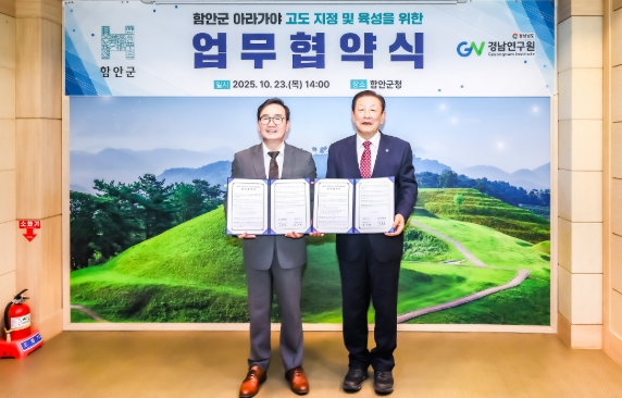 함안군(군수 조근제)은 23일 경남연구원(원장 오동호)과 함께 ‘아라가야 왕도 함안의 고도 지정 및 육성’을 위한 업무협약을 체결했다고 밝혔다.