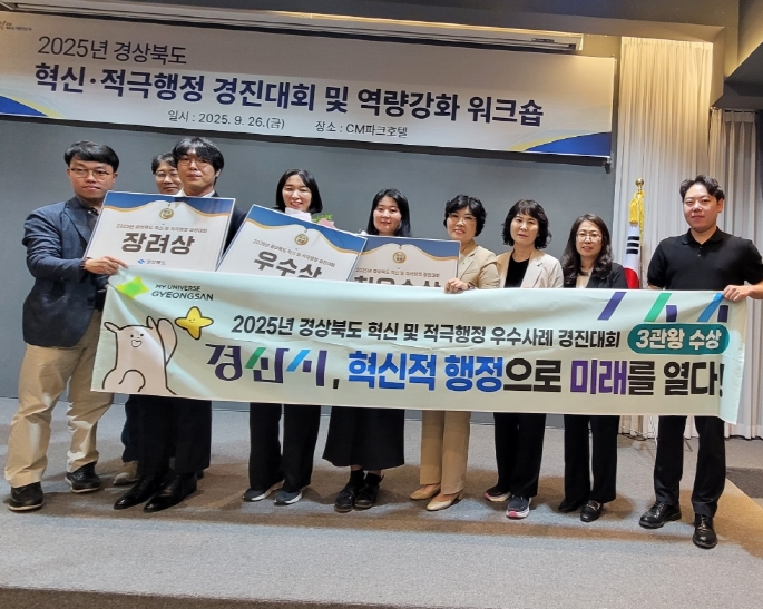 [뉴스노크=김인호 기자] 경산시가 경상북도가 주관한‘2025년 경상북도 혁신 및 적극 행정 우수사례 경진대회’에서 3개 부문 수상의 영예를 안았다.