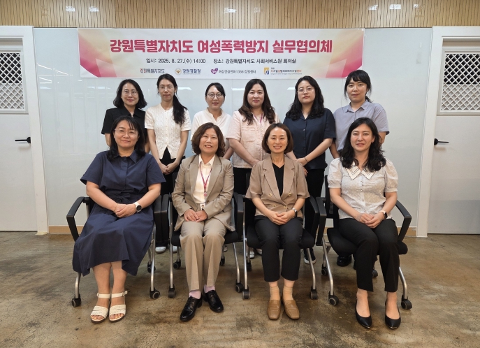 [뉴스노크=김인호 기자] 강원특별자치도는 8월 27일 오후 2시, 도 사회서비스원 회의실에서 '여성폭력방지 실무협의체 회의'를 개최했다. 이번 회의에는 강원특별자치도, 강원경찰청, 여성긴급전화1366 등 도내 폭력 피해자 지원기관 관계자들이 참석해 현장 중심의 실무 대응력 강화 방안을 논의했다.