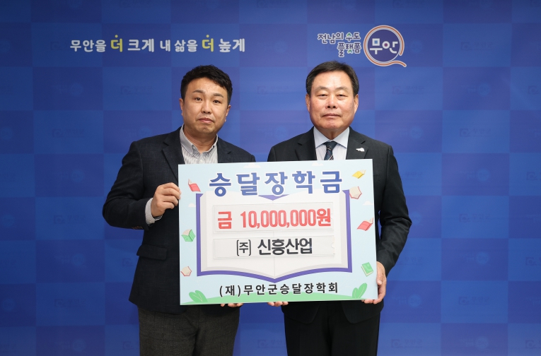 [뉴스노크=김인호 기자] 전남 무안군은 지난 1일 지역인재 육성을 위해 ㈜신흥산업이 장학금 1천만 원을, 청솔수산 윤낙진 대표가 장학금 1백만 원을 각각 (재)무안군승달장학회에 기탁했다고 밝혔다.