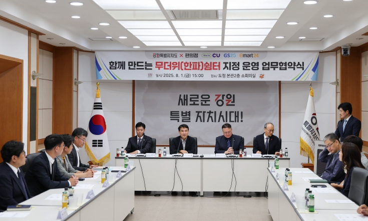 [뉴스노크=김인호 기자] 강원특별자치도는 8월 1일 오후 3시 30분, 도청 본관 회의실에서 광역자치단체 최초로 ㈜BGF 리테일, ㈜GS리테일, ㈜이마트24 등 편의점 3사와 무더위 쉼터 운영을 위한 업무협약을 체결했다.
