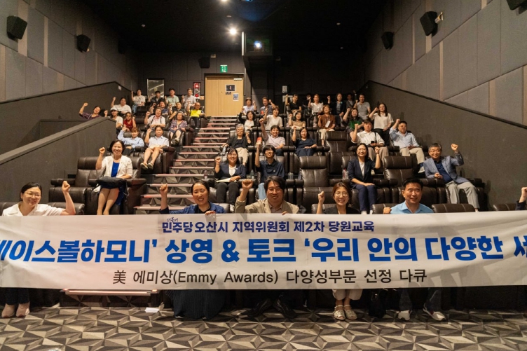 [뉴스노크=김인호 기자] 더불어민주당 차지호 국회의원(경기 오산시)은 지난 7월 31일 저녁, 오산중앙CGV에서 더불어민주당 오산시 지역위원회 제2차 당원교육을 개최하고, 미국 에미상(EMMY) 다문화 부문 후보에 오른 다큐멘터리 '베이스볼 하모니'를 연출한 홍지영 감독과 함께 작품을 관람했다고 밝혔다.