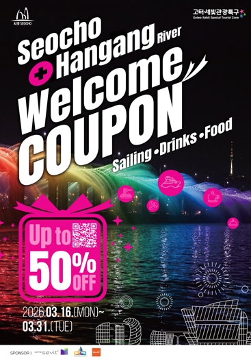이번 이벤트는 관광객이 서초구 고터·세빛 관광특구 내 주요 명소인 고투몰, 반포한강공원, 피카소벽화거리 등을 방문해 인증사진을 촬영한 뒤 필수 해시태그(#seocho, #rainbowfountain 등)와 함께 개인 SNS에 게시하고, 이를 고터·세빛 관광안내센터에 제시하면 선착순 3,210명에게 ‘서초 웰컴쿠폰’을 제공한다. 쿠폰을 이용하면 최대 50% 할인 혜택을 받을 수 있다. 구는 SNS 인증 이벤트를 통해 내·외국인 관광객들에게 다양한 할인 혜택을 제공하고 관광특구 방문을 유도해 관광특구 일대를 대한민국을 대표하는 관광 명소로 알린다는 계획이다.