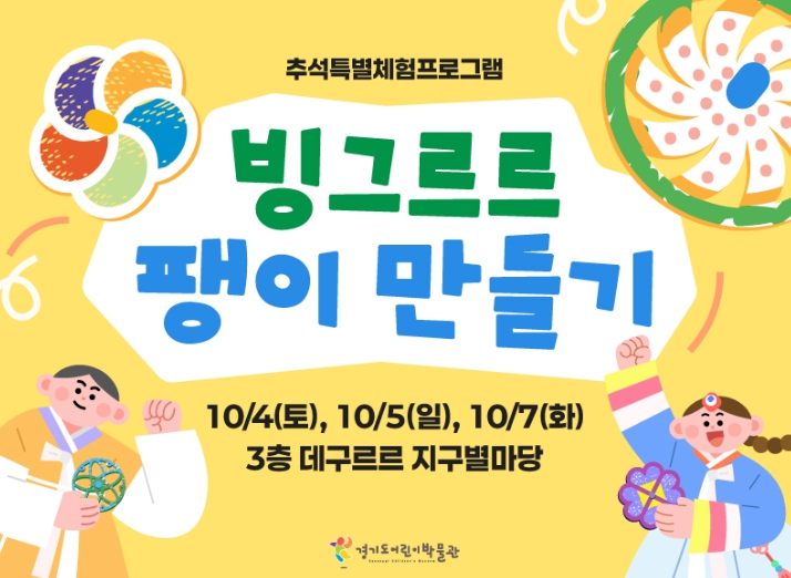 10월 4일, 5일, 7일에는 〈빙그르르 팽이 만들기〉 프로그램이 운영된다. 우리나라 전통놀이인 팽이를 만들어보는 자율 체험 프로그램으로 오전 11:00~12:00, 오후 3:00~4:00(단, 4일에는 오후 12:00~1:00, 오후 4:00~5:00 운영) 동안 운영되며, 체험 시간은 약 10분 정도 소요된다. 현장 접수로 참여 가능하며, 잔여석이 생길 때마다 선착순으로 입장한다.