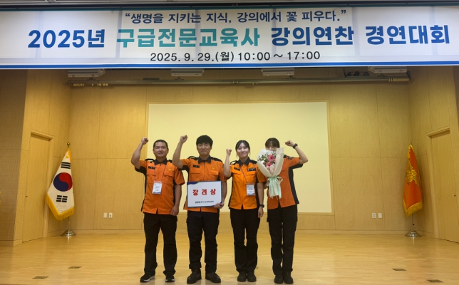 파주소방서는 소방교 최동주·이동호·김은주, 소방사 황보라 등 4명이 한 팀으로 참가해 ⌜10초 안에 분석하는 심근경색 심전도!⌟라는 주제로 발표했다. 현장 사례를 반영한 실무 중심의 강의로 응급의학과 의사 등 심사위원단으로부터 높은 평가를 받으며 최종 3위에 올랐다.