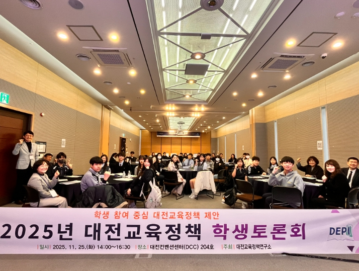 [뉴스노크=김인호 기자] 대전교육정책연구소는 11월 25일 오후 2시 대전컨벤션센터(DCC) 제1전시장 204호에서 2025년 대전교육정책 학생토론회를 개최했다고 밝혔다.