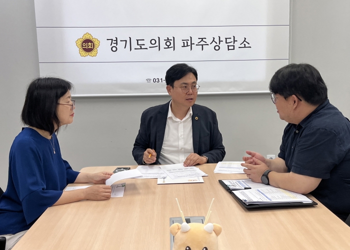 [뉴스노크=김인호 기자] 경기도의회 경제노동위원회 이용욱 의원(더불어민주당, 파주3)은 24일 파주상담소에서 파주고 체육관 및 급식실 증축을 비롯한 교육환경개선사업과 관련해, 학생들이 보다 나은 환경에서 학습할 수 있도록 사업을 세심하고 책임감 있게 추진해 줄 것을 파주시교육지원청에 당부했다.