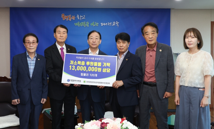 [뉴스노크=김인호 기자] 대전시교육청은 7월 24일 (사)대한참전유공자 환경봉사단중앙회로부터 1,300만원 상당(텀블러 120개)를 기탁받았다고 밝혔다.