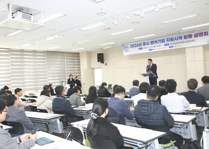 [뉴스노크=김인호 기자] 안양시는 23일 오후 2시 동안구 인덕원동 안양창업지원센터 9층 강당에서 ‘2026년 중소·벤처기업 지원시책 합동 설명회’를 개최했다.