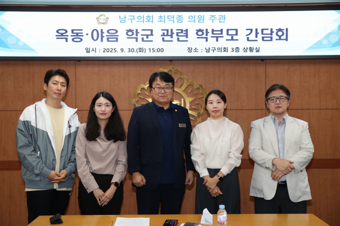 [뉴스노크=김인호 기자] 울산 남구의회 최덕종 의원(더불어민주당·신정4동·옥동)은 30일 3층 의회상황실에서 남구 옥동지역 중학교 배정 민원과 관련해 학부모 간담회를 개최했다.