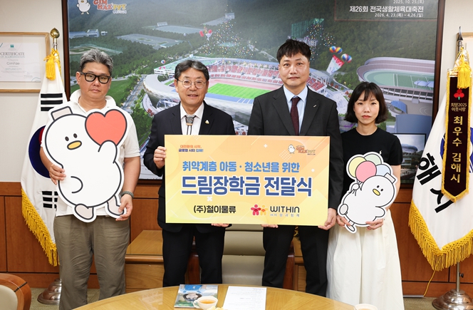 [뉴스노크=김인호 기자] 김해시는 ㈜철이물류, (사)위드인 사람과함께에서 취약계층 아동·청소년을 위한 드림장학금을 기탁했다고 25일 밝혔다.