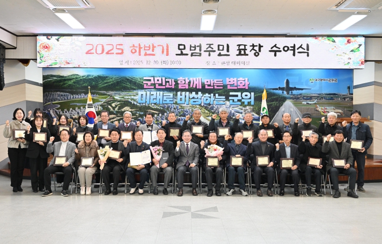 [뉴스노크=김인호 기자] 군위군은 30일 오전 10시 군청 대회의실에서 수상자와 가족, 부서장 등 50여 명이 참석한 가운데 2025년도 하반기 모범 주민에 대한 표창 수여식을 개최했다.
