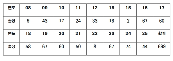 ▲ 롯데 김상수 연도별 출장 경기 수 |