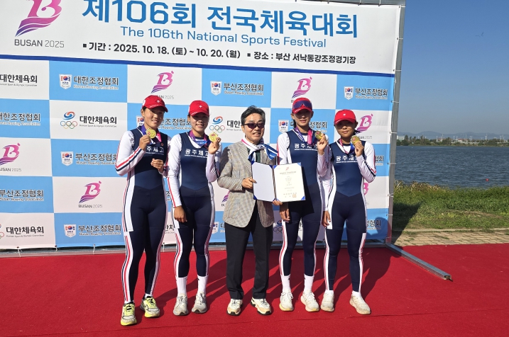 [뉴스노크=김인호 기자] 광주광역시체육회는 ‘제106회 전국체육대회’ 조정 여자18세이하부 쿼드러플스컬 경기에서 광주체고 조정팀이 3연패를 달성했다고 밝혔다.