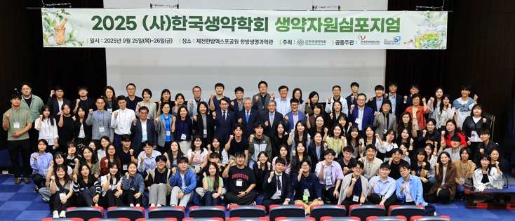 이번 심포지엄은 (사)한국생약학회 주관으로 국내 생약 및 천연물 관련 연구자와 학생 등 600여 명이 참석했으며, “지역 전통 생약자원을 활용한 고부가가치 천연물산업 활성화 미래전략”을 주제로 최신 연구 성과와 미래 발전 전략을 공유하는 학술 교류의 장이 됐다.