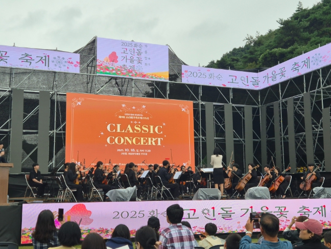 이번 오케스트라 음악회는 '2025 화순고인돌가을꽃축제를 맞아 축제장 주무대에서 펼쳐져 축제장을 찾은 관광객과 주민들에게 아름다운 선율을 선사했다.