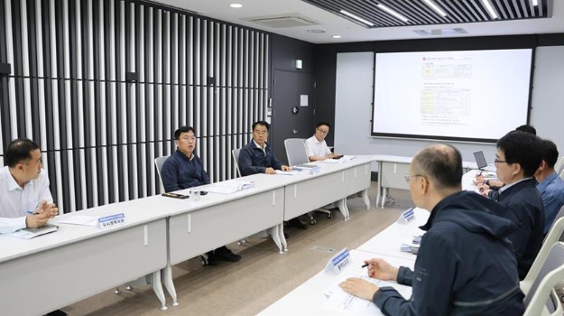 ▲ 강주엽 행복청장(왼쪽테이블 왼쪽에서 두번째)이 정부세종청사 6동에서 중대산업‧시민재해 관련 의무이행사항을 점검하고 있다. |