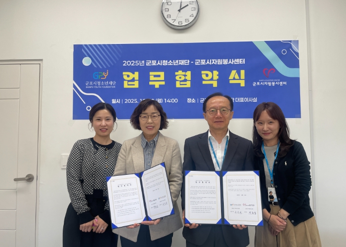 [뉴스노크=김인호 기자] 군포시청소년재단은 10월 20일 군포시청소년재단 대표이사실에서 군포시자원봉사센터와 지역사회 상생 및 자원봉사 활성화를 위한 업무협약을 체결했다.