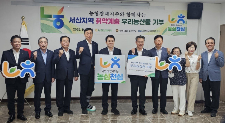 농협경제지주는 이번 전달식에서 쌀과 김치 등 양질의 우리 농산물을 기부했으며, 물품은 서산시사회복지협의회를 통해 고령자·장애인 등 관내 취약 계층에게 전달될 예정이다.