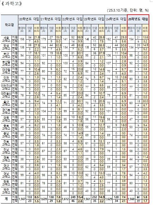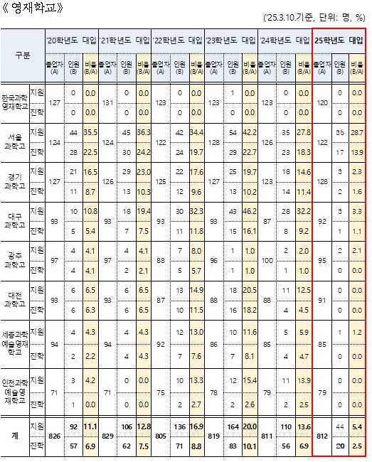 [뉴스노크=김인호 기자] 교육부는 8월 12일, ‘2025학년도 영재학교·과학고 의·약학 계열 진학률’을 발표한다고 밝혔다.