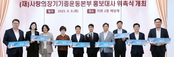 [뉴스노크=김인호 기자] 경기도의회 문승호 의원(더불어민주당, 성남1)은 9월 9일 ‘장기기증의 날’을 맞아 경기도의회 예담채에서 열린 홍보대사 위촉식에서 홍보대사로 위촉됐다. 이번 행사는 (재)사랑의장기기증운동본부 경기지부가 주최했으며, 생명나눔문화 확산과 생명존중교육 활성화를 목표로 마련됐다.