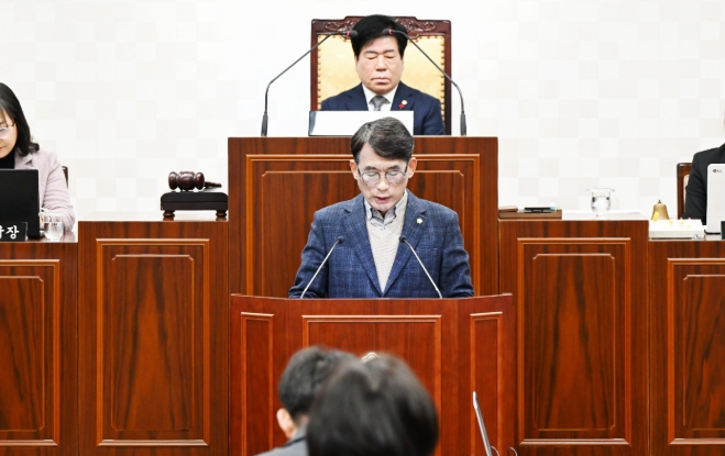 | ▲ 제291회 임시회 제2차 본회의에서 김상수 의회운영위원장이 제안설명을 진행하고 있다. |