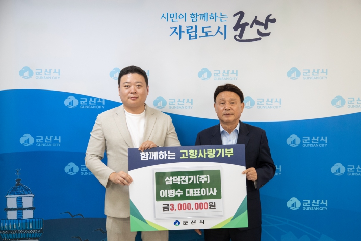 [뉴스노크=김인호 기자] 군산시는 삼덕전기(주) 이병수 대표이사가 고향사랑기부금 300만 원을 기탁했다고 밝혔다.