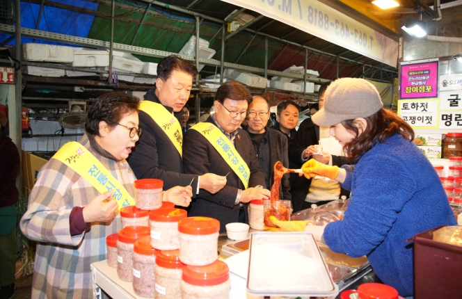 [뉴스노크=김인호 기자] 전북특별자치도의회는 설 명절을 앞둔 10일 군산 주공시장을 방문해 전통시장 상인들을 응원하며, 시장 활성화를 위한 장보기 행사와 이용 캠페인을 진행했다.