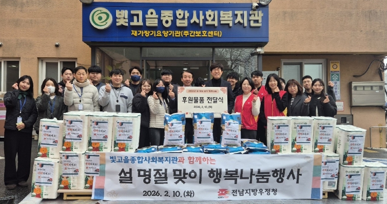 이날 전남지방우정청 행복나눔봉사단은 급식소를 찾은 어르신들에게 떡국과 명절 음식을 정성껏 배식하고, 식당 정돈 등 봉사활동을 진행했다. 또한250만 원 상당의 명절 특식 지원과 후원 물품을 전달하며 온정을 나눴다.