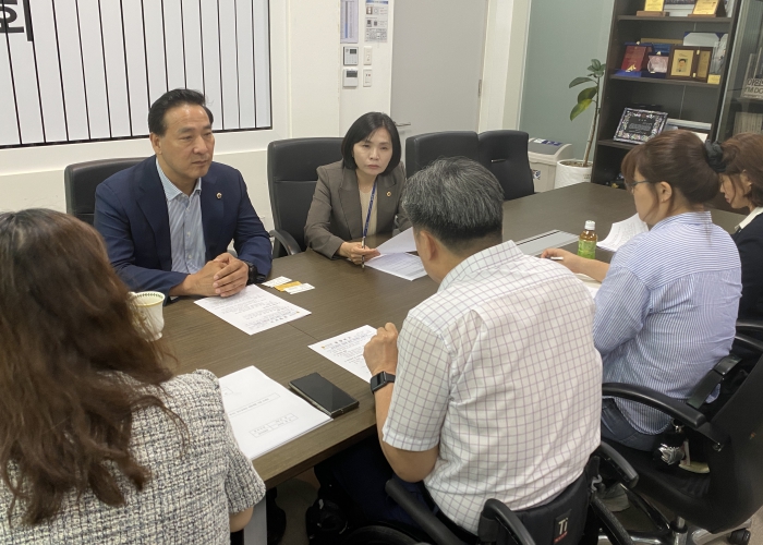 [뉴스노크=김인호 기자] 경기도의회 보건복지위원회 황세주 부위원장(더민주, 비례)와 김용성 의원(더민주, 광명4)는 3일 경기도의회에서 한국척수장애인협회 경기도협회(협회장 김창호)와 정담회를 열고, 중도장애인 전환재활을 위한 제도적 지원방안을 논의했다.