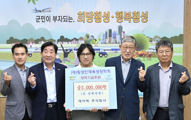 ▲ 에이텍 주식회사, 횡성인재육성장학회에 장학기금 전달 |
