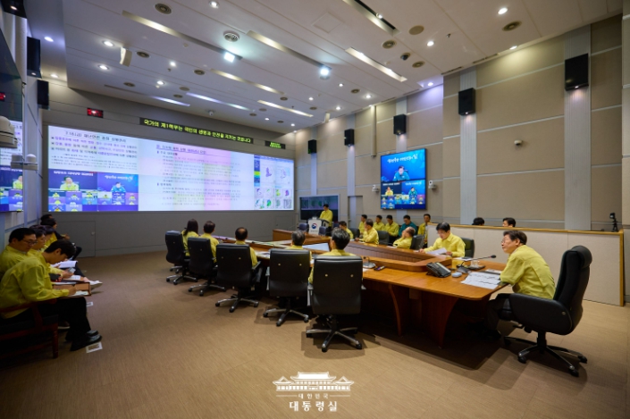 이에 따르면, 대통령의 모두발언 이후 기상청의 보고를 시작으로 행정안전부 중앙재난안전대책본부 및 각 지자체별로 피해 현황을 점검하고, 호우 대처 상황을 보고받았다.