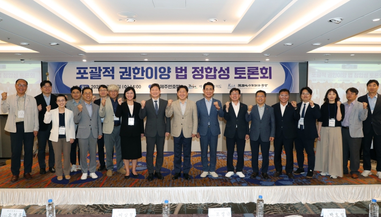 이번 토론회는 제주특별자치도가 조문별 특례 중심의 기존 권한 이양방식에서 벗어나 보다 자율적이고 실효적인 ‘포괄이양 방식’으로 전환하는 방안을 논의하기 위해 마련됐다. 이와 함께 법적 정합성 확보와 재정·벌칙 특례 확보방안도 함께 다뤘다.