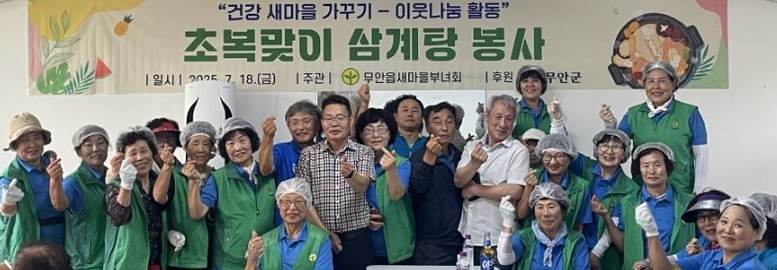 [뉴스노크=김인호 기자] 무안군 삼향읍 새마을부녀회(부녀회장 권숙희)는 18일, 관내 600여 명의 어르신들을 모시고 건강 복달임 행사를 개최했다.