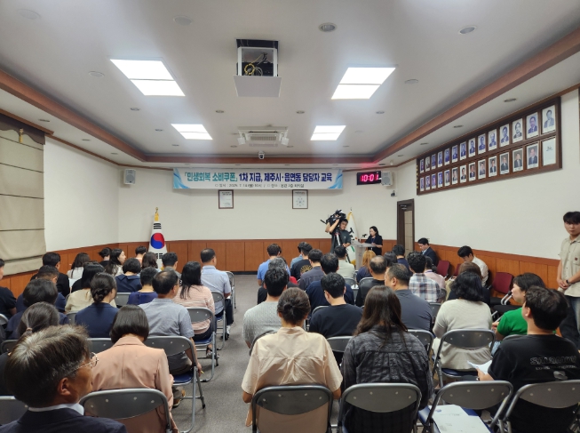 [뉴스노크=김인호 기자] 제주특별자치도가 ‘민생회복 소비쿠폰’ 신청 접수를 앞두고 차질 없는 지급을 위해 14일 행정시 담당자 교육을 실시했다. 대규모 신청에 대비해 원활하게 지급이 이뤄지도록 준비에 만전을 기울이고 있다.