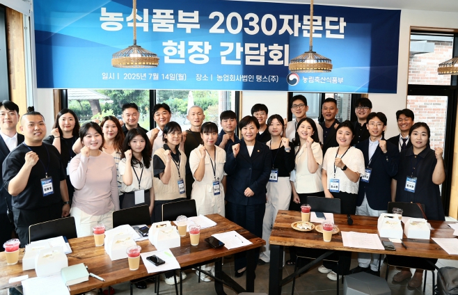 [뉴스노크=김인호 기자] 송미령 농림축산식품부 장관은 7월 14일 오후 2시 세종특별자치시 연서면에 위치한 농업회사법인 땡스(주)에서 청년보좌역, 농식품부 2030자문단, 청년농업인들과 함께 현장 간담회를 개최했다.