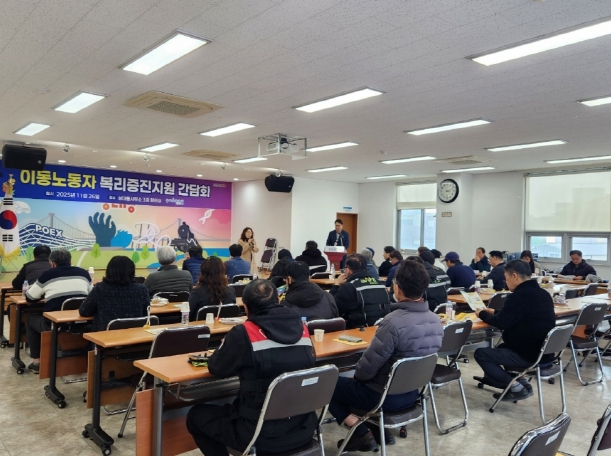 [뉴스노크=김인호 기자] 포항시는 지난 26일 상대동 행정복지센터 회의실에서 ‘이동노동자 복리증진지원 간담회’를 열고 지역 내 이동노동자의 근무환경 개선과 복지 확대 방안을 논의했다.