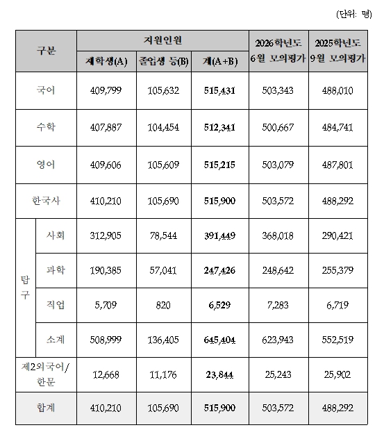 ▲ 2026학년도 수능 9월 모의평가 접수 결과 |