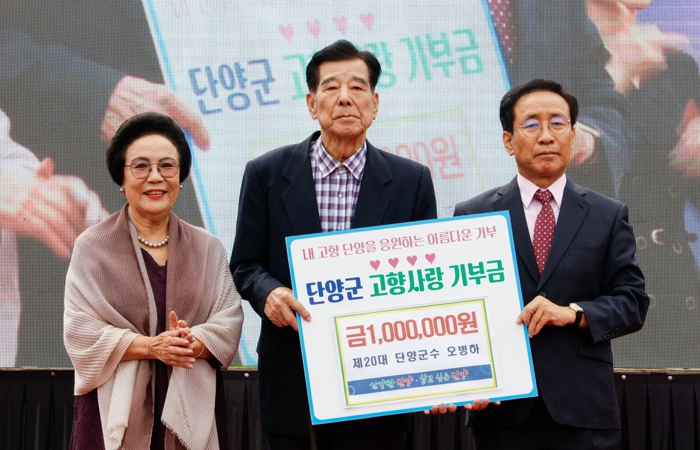 [뉴스노크=김인호 기자] 충북 단양군은 지난 19일 단양 공설운동장에서 열린 신단양 이주 40주년 기념식에서 제20대 단양군수를 역임한 오병하 전 군수가 고향사랑기부금 100만 원을 기탁했다고 밝혔다.